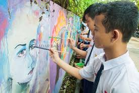 Edo sedang duduk di depan rumahnya. Ia melihat seorang anak yang tidak dikenal. Anak itu ingin mencoret-coret tembok tetangganya. Edo mengingatkannya dengan santun agar tidak mencoretcoret tembok.
